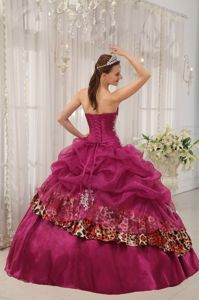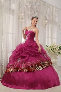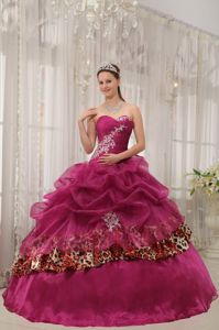 2013 Burgundy Leopard Print Pick Ups Appliqued Quince Dresses2013 Burgundy Leopard Print Pick Ups Appliqued Quince Dresses