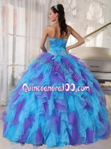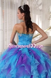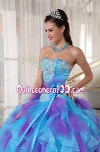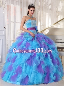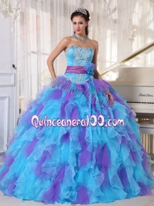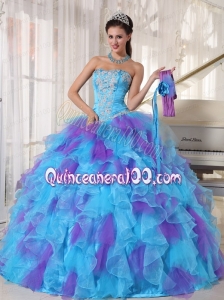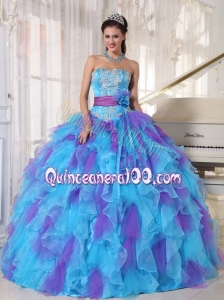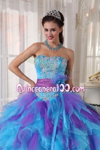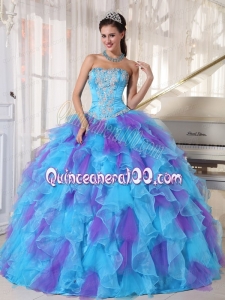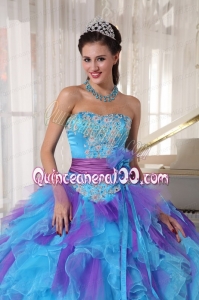 2014 Baby Blue and Purple Strapless Appliques Quinceanera Dress with Ruffles