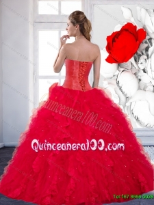 2014 Colorful Sweetheart Red Quinceanera Dress with Beading and Ruffles