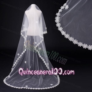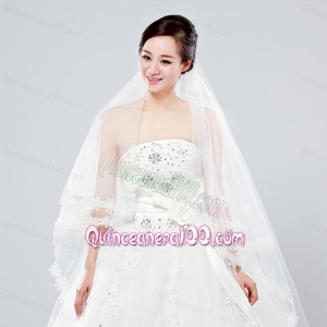 2014 Two-Tier Tulle Elbow Veils with Lace Edge