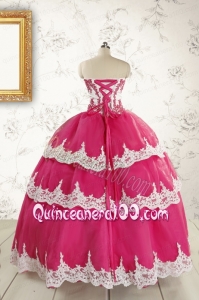 2015 Cheap Hot Pink Quinceanera Dresses with Appliques