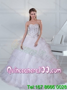 2015 Detachable Sweetheart White Quinceanera Dress with Ruffles and Beading