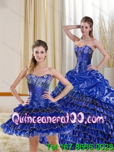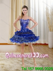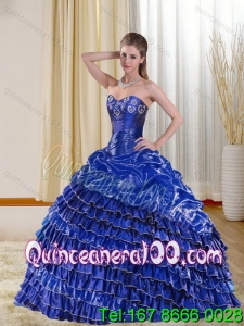 2015 Elegant Royal Blue Sweet 15 Dress with Ruffled Layers and Beading