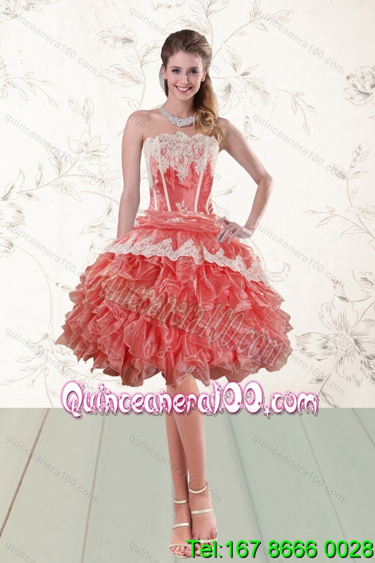 2015 Elegant Ruffled Strapless Prom Gown in Watermelon