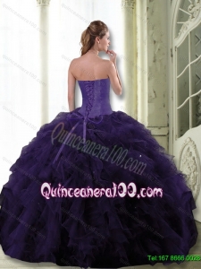 2015 Exclusive Dark Purple 15 Quinceanera Dress with Beading and Ruffle