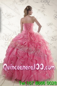 2015 Luxurious Rose Pink Quince Dresses with Paillette and Ruffles