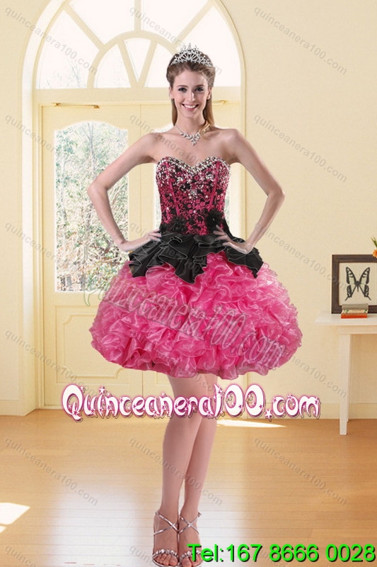 2015 Newest Puffy Appliques Multi Color Prom Dresses in Black