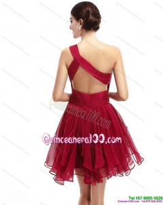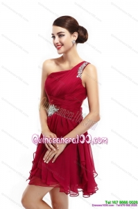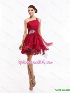 2015 One Shoulder Ruching Mini Length Dama Dresses with Beading
