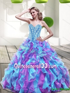 2015 Plus Size Beading and Ruffles Sweetheart Quinceanera Gowns in Multi Color