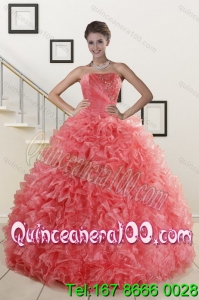 2015 Spring Watermelon Sweet 15 Dresses with Beading and Ruffles
