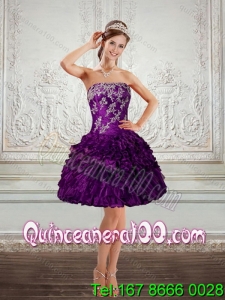 2015 Strapless Quinceanera Dress with Embroidery and Ruffles