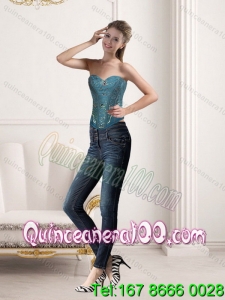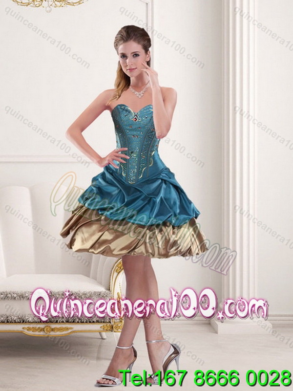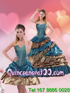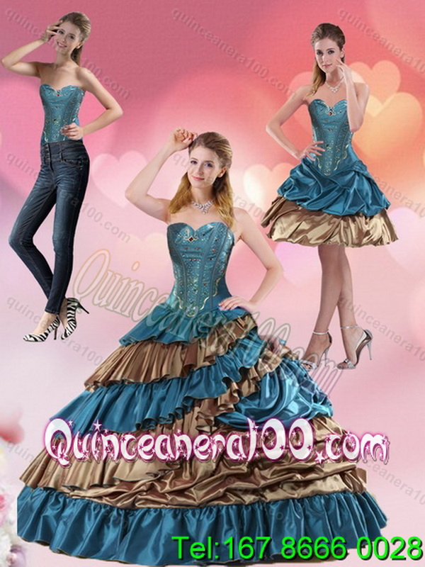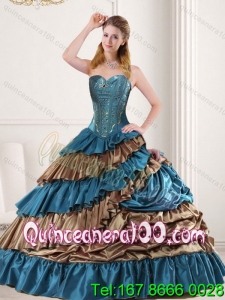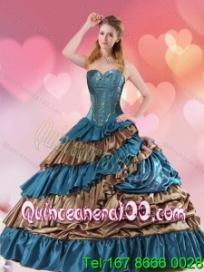2015 Teal and Brown Sweetheart Sweet 15 Dress with Beading and Ruffled Layers