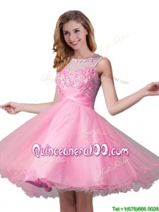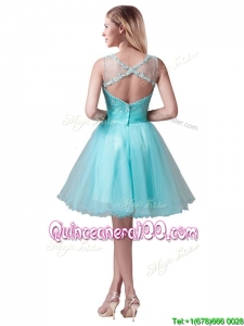 2016 Classical See Through Bateau A Line Dama Dress with Beading