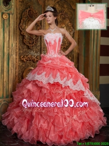 2016 Exquisite Appliques and Ruffles Quinceanera Gowns in Waltermelon