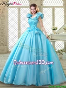 2016 Fall Cheap Aqua Blue Quinceanera Gowns with Appliques and Ruffles