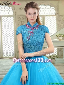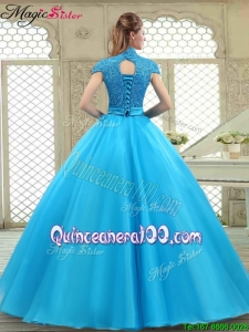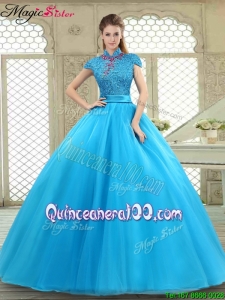 2016 Fall Fashionable High Neck Quinceanera Gowns in Baby Blue
