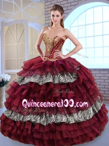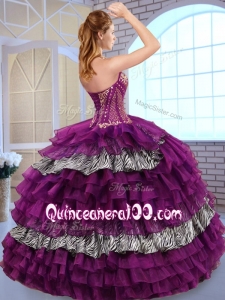, 2016 Fashionable Sweetheart Ball Gown Ruffled Layers and Zebra Sweet 16 Dresses
