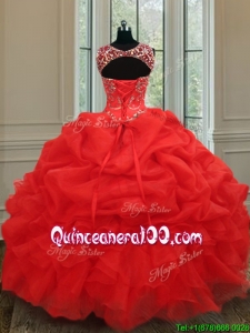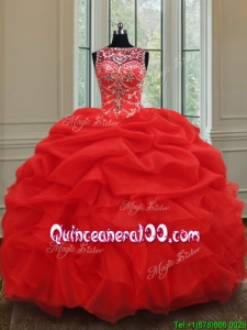 2017 Luxurious See Through Bateau Bubble and Ruffled Red Quinceanera Dress in Organza