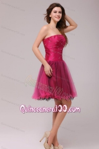 A-line Strapless Beading Organza Fuchsia Dama Dresses