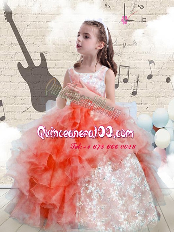 Admirable Floor Length Watermelon Red Pageant Dress for Girls Scoop Sleeveless Lace Up