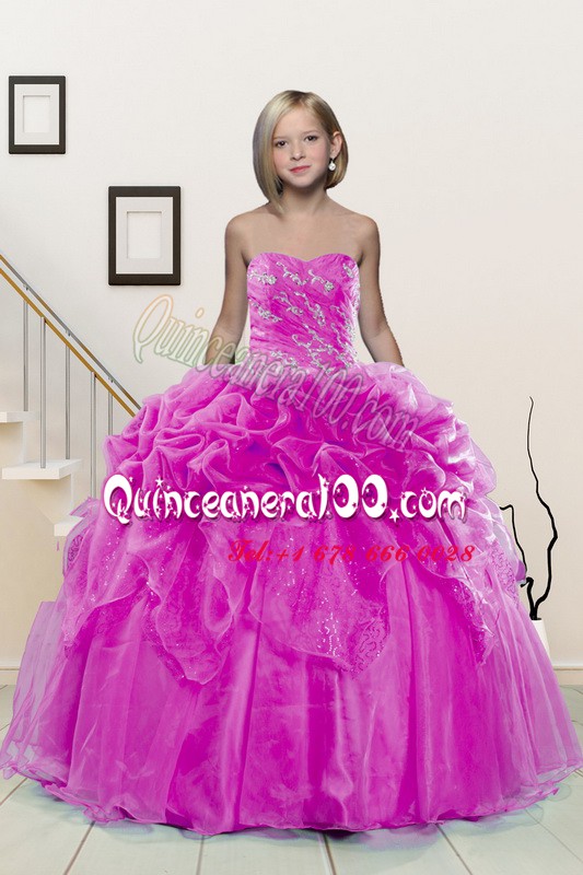 Admirable Fuchsia Sweetheart Lace Up Beading and Pick Ups Kids Formal Wear Sleeveless