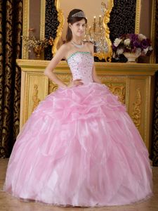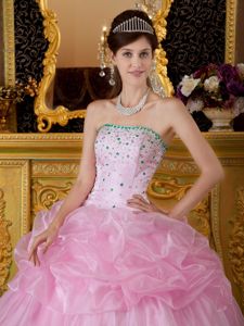 Amazing Organza Pink Strapless Quinceanera Dresses with BeadingAmazing Organza Pink Strapless Quinceanera Dresses with Beading