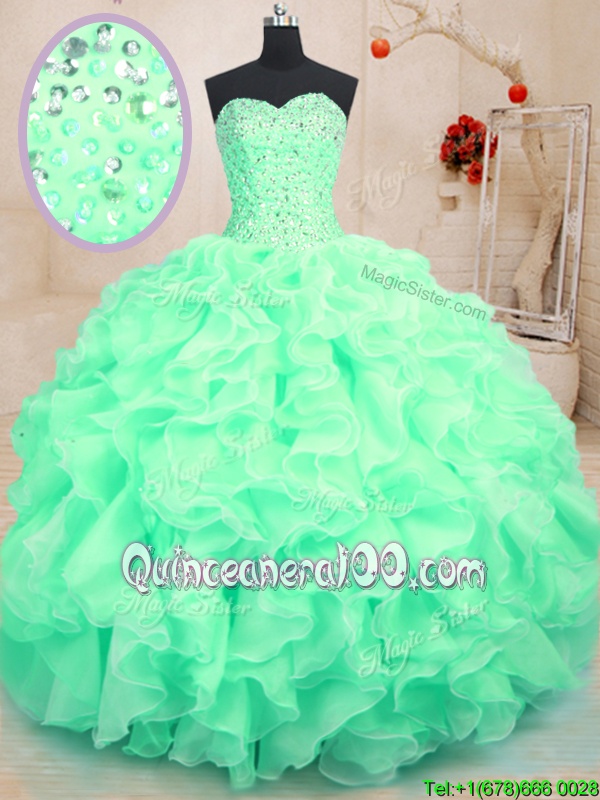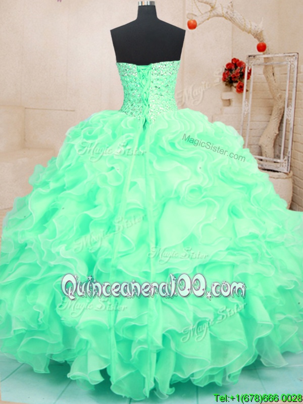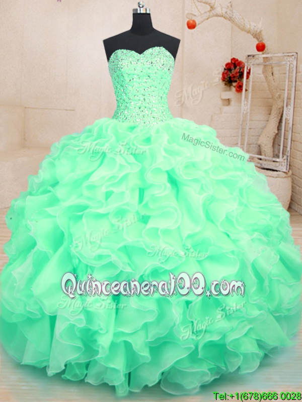Apple Green Sleeveless Beading and Ruffles Floor Length Quinceanera Dresses