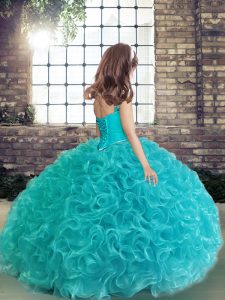 Apple Green Straps Lace Up Beading Little Girl Pageant Dress Sleeveless