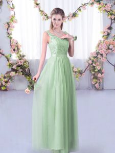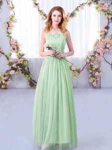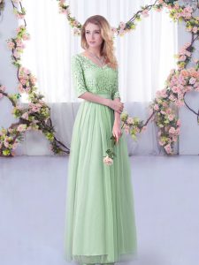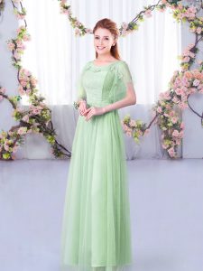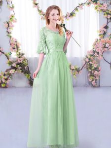 Apple Green Tulle Side Zipper Court Dresses for Sweet 16 Half Sleeves Floor Length Lace and Belt