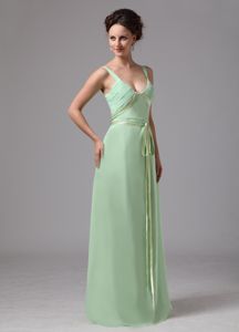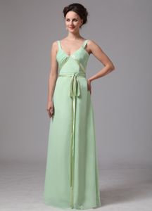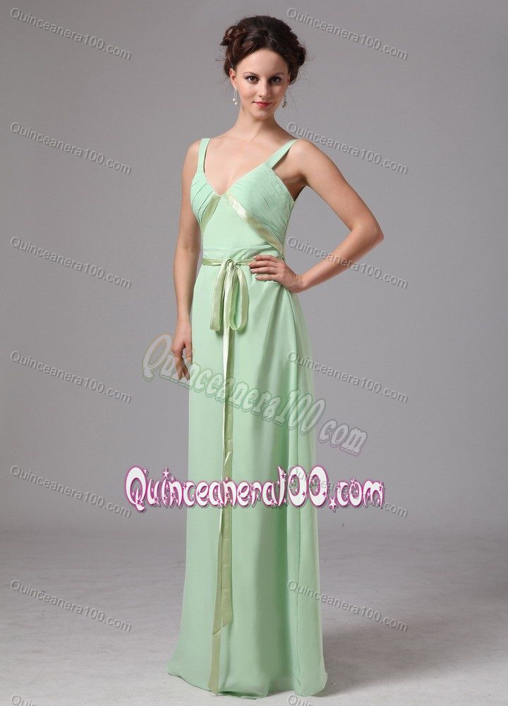 Apple Green V-neck Chiffon Quinceanera Dress for Dama with a Sash