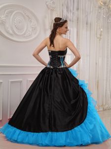 Appliqued Blue and Black Dresses for A Quinceanera with Flounce