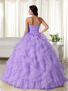 Appliqued Lavender Organza Quinceanera Dresses with Ruffled LayersAppliqued Lavender Organza Quinceanera Dresses with Ruffled Layers