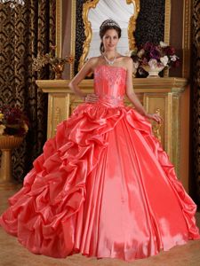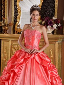 Appliqued Watermelon Strapless Dress for Quinceanera with Pick ups