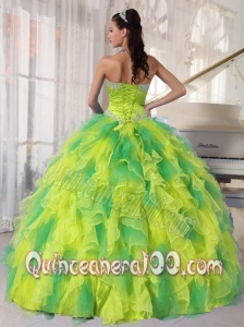 brand new ruffles quinceanera gowns dresses in yellow green,