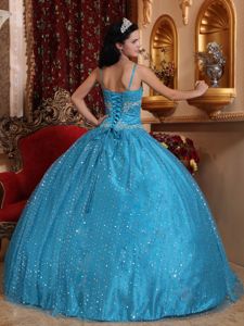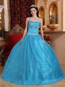 Aqua Blue Spaghetti Straps Quinceanera Gown Dresses with SequinsAqua Blue Spaghetti Straps Quinceanera Gown Dresses with Sequins