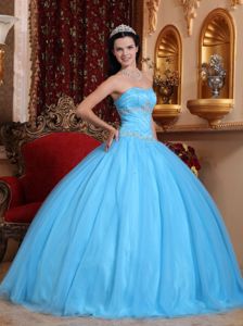 Aqua Blue Sweetheart Beaded Quinceanera Dress with Corset BackAqua Blue Sweetheart Beaded Quinceanera Dress with Corset Back