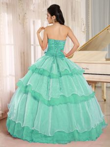 Aquamarine Quinceanera Dresses with Beading and Ruched Bodice