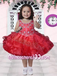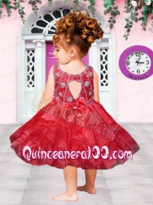 Aque Blue Scoop Knee-length Little Girl Dress with Embroidery