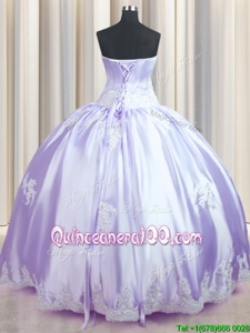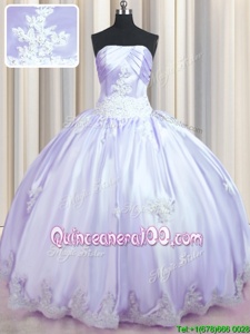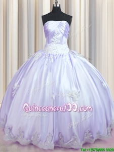 Artistic Floor Length Lace Up Quinceanera Gowns Lavender and In forMilitary Ball and Sweet 16 and Quinceanera withBeading and Appliques