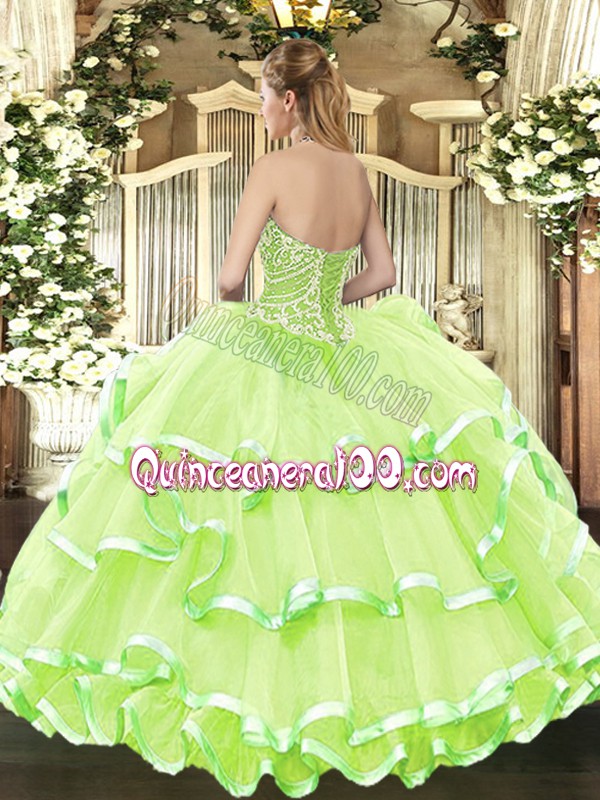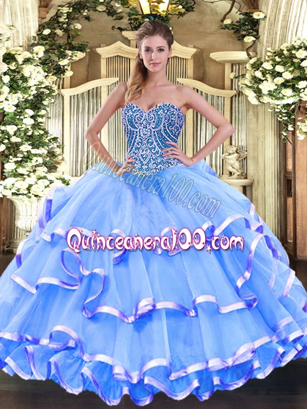 Baby Blue Sleeveless Beading and Ruffled Layers Floor Length Quinceanera Gown