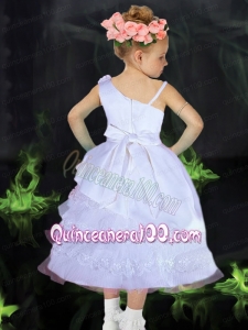 Ball Gown Asymmetrical Ankle-length Hand Made Flowers Bowknot White Little Girl Dress
