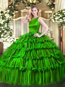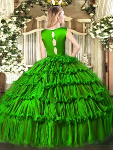 Ball Gowns Quince Ball Gowns Green Scoop Organza Sleeveless Floor Length Clasp Handle