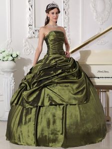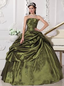 Beaded and Ruched Strapless Sweet 16 Dresses in Olive Green 2013Beaded and Ruched Strapless Sweet 16 Dresses in Olive Green 2013