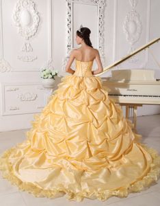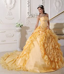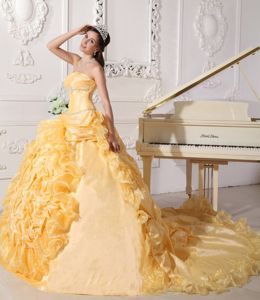 Beaded and Ruffled Strapless Gold Quinceanera Dresses Gown 2013