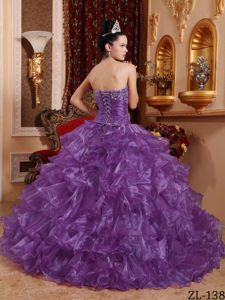 Beaded Bodice Purple Quinceanera Gown Dresses with Puffy Ruffles