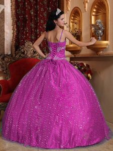 Beaded Spaghetti Straps Sequined Quinceanera Dress in Fuchsia