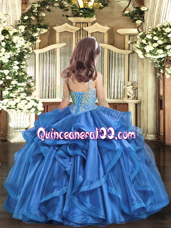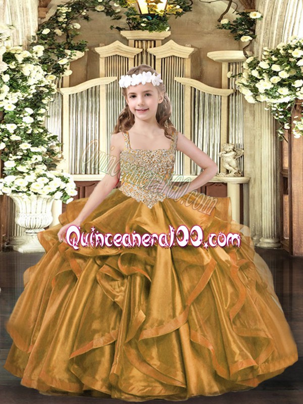 Beading and Ruffles Little Girls Pageant Gowns Brown Lace Up Sleeveless Floor Length