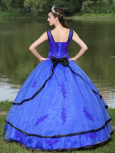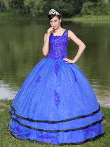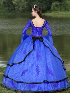 Beading Royal Blue Tiered Quinces Dresses with Long Fan Sleeves