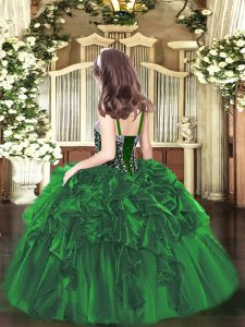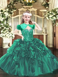 Beauteous Floor Length Lace Up Pageant Dress Toddler Dark Green for Party and Quinceanera with Beading and Ruffles