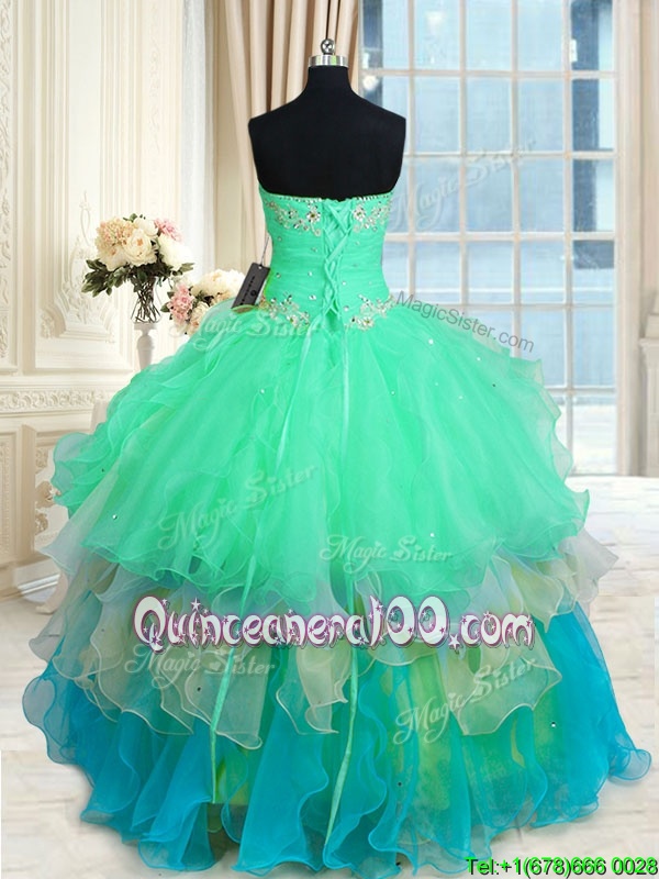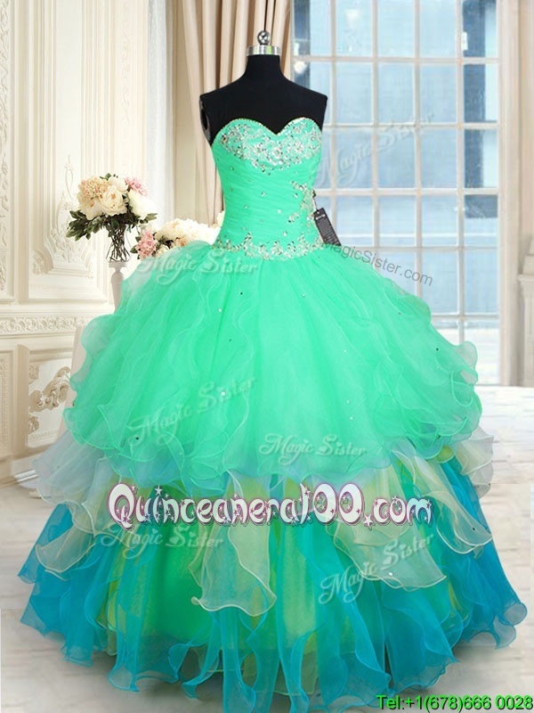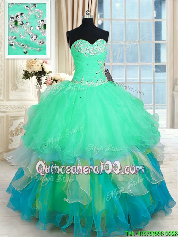 Beauteous Multi-color Sweetheart Neckline Beading and Ruffles Sweet 16 Quinceanera Dress Sleeveless Lace Up
